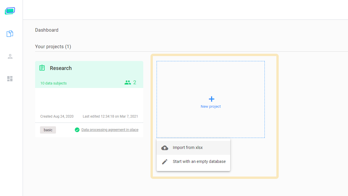 This selection will create an empty database, where you can build your own data structure by adding subjects/parameters/tabs